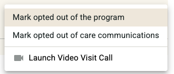 • The Video Visit Eligible notification below covers the opt out and launch menu below.